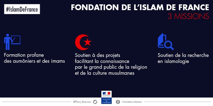 « Dans cet objectif, la Fondation de l’islam de France est appelée à soutenir des projets à caractère culturel, social ou éducatif », notamment la « recherche universitaire en islamologie » et la « formation profane des imams », précise-t-on de même source.