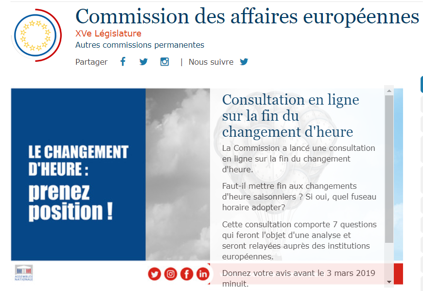 Pensez à répondre au questionnaire « changement d’heure » de l’Assemblée Nationale :